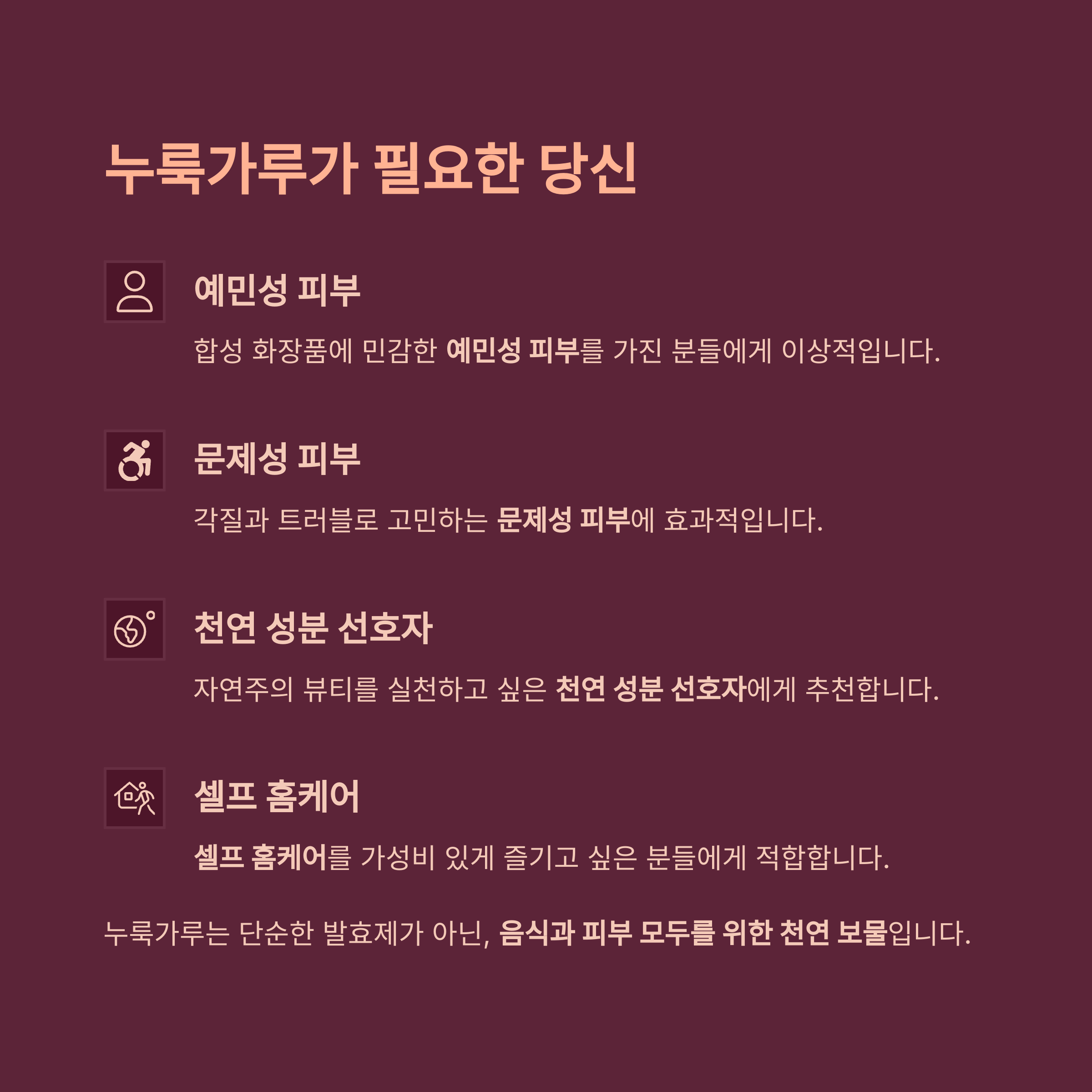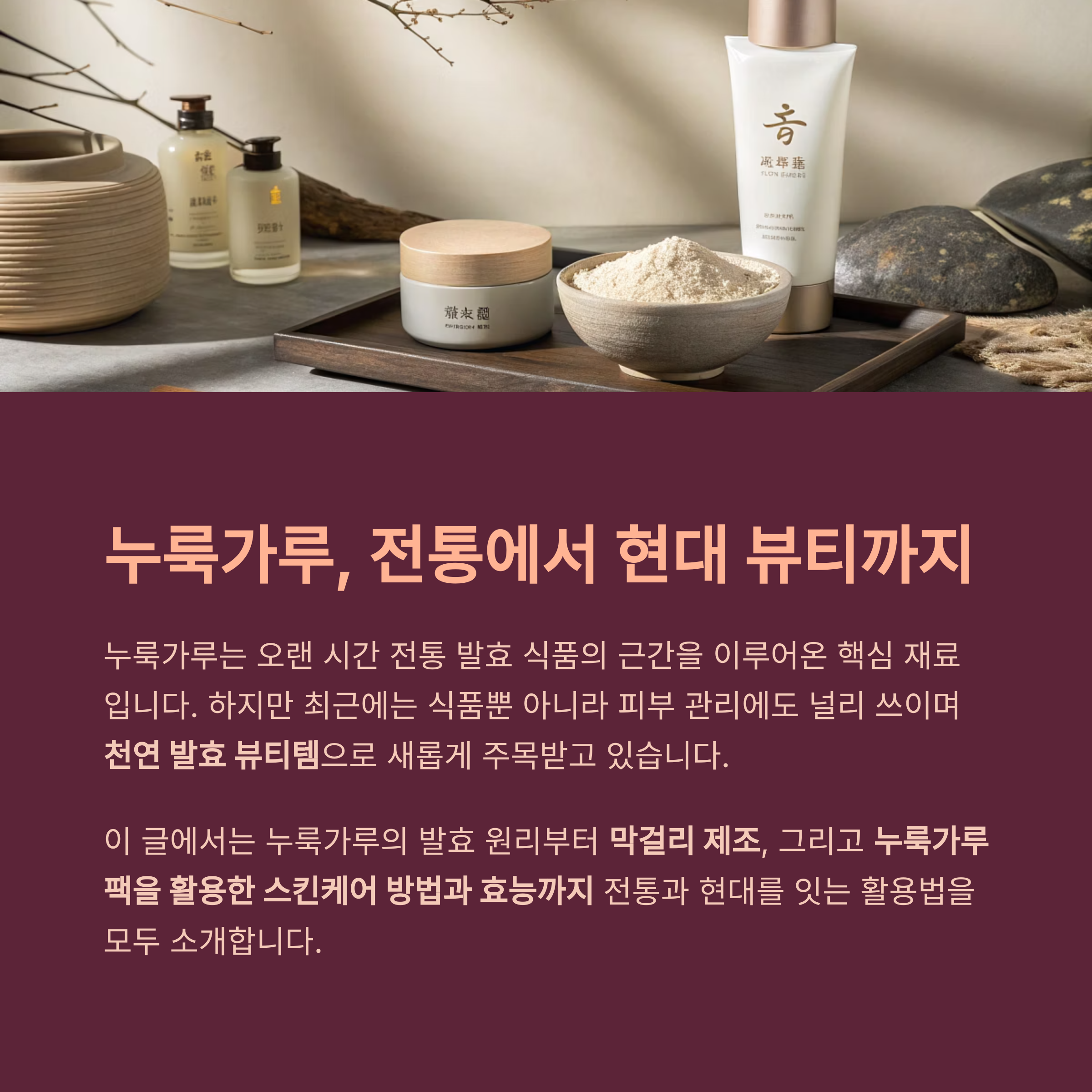 누룩가루는 단순한 발효제가 아닌, 음식과 피부 모두를 위한 천연 보물입니다.