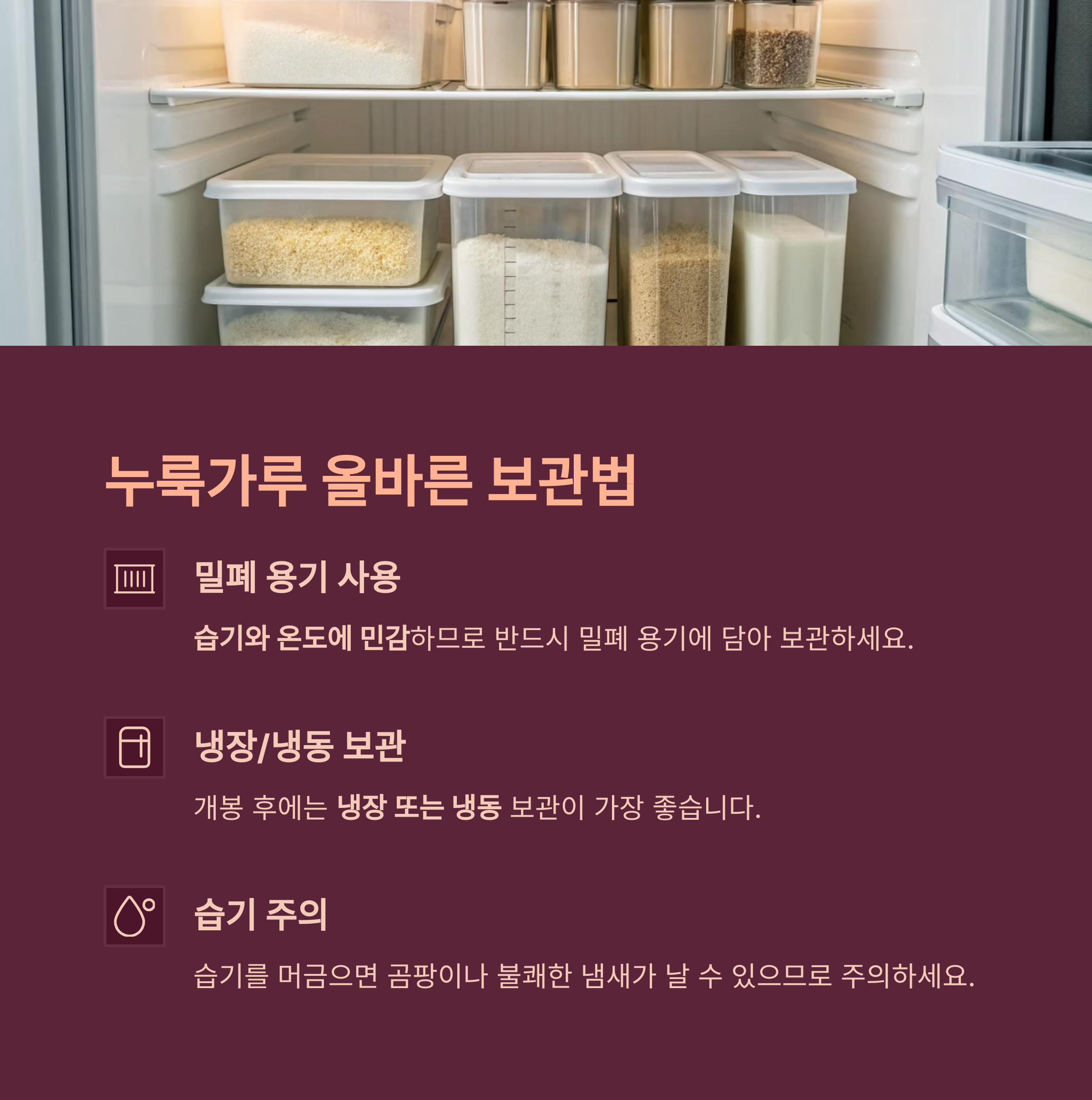 누룩가루는 습기와 온도에 민감하므로 반드시 밀폐 용기에 담아