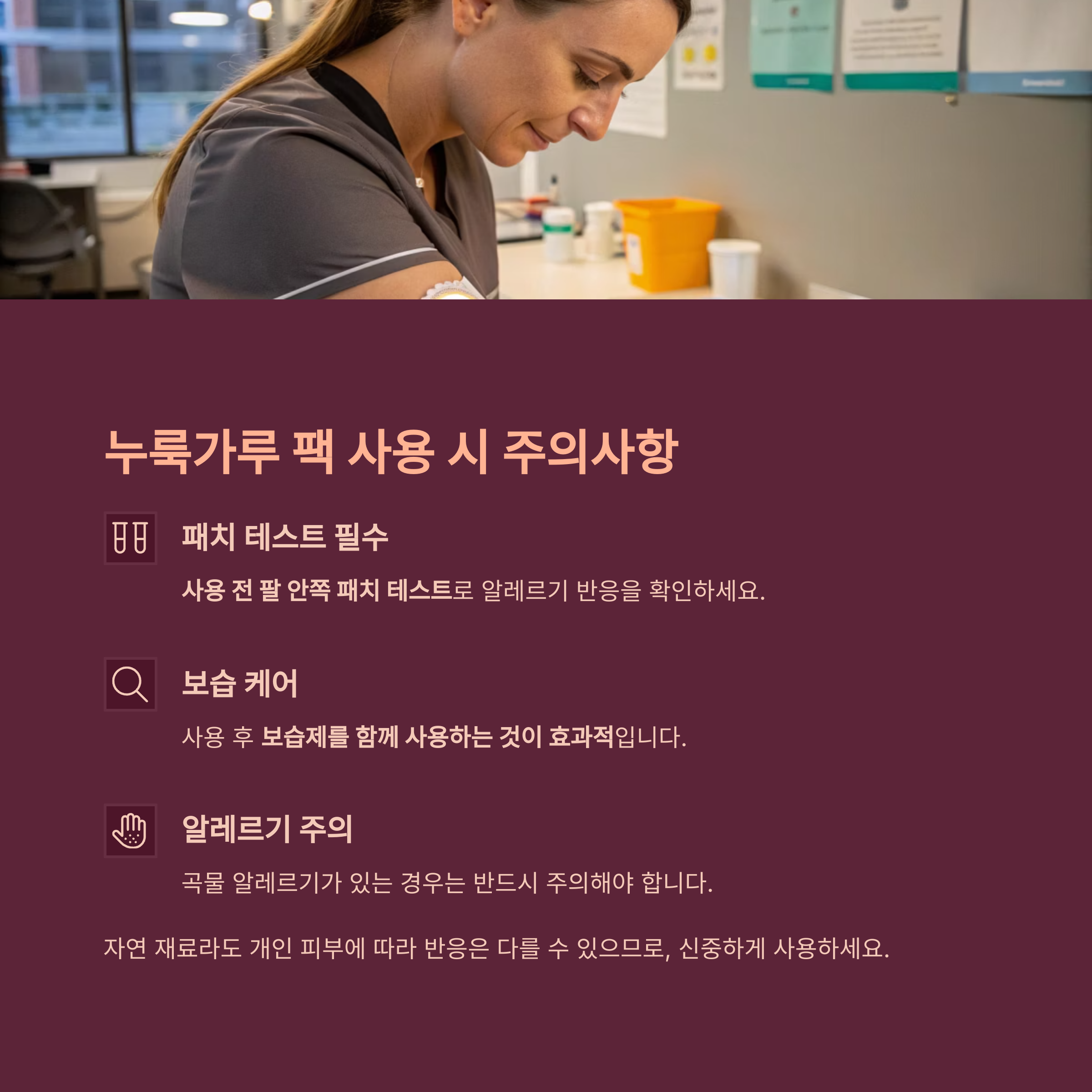 사용 전 팔 안쪽 패치 테스트를 추천합니다.