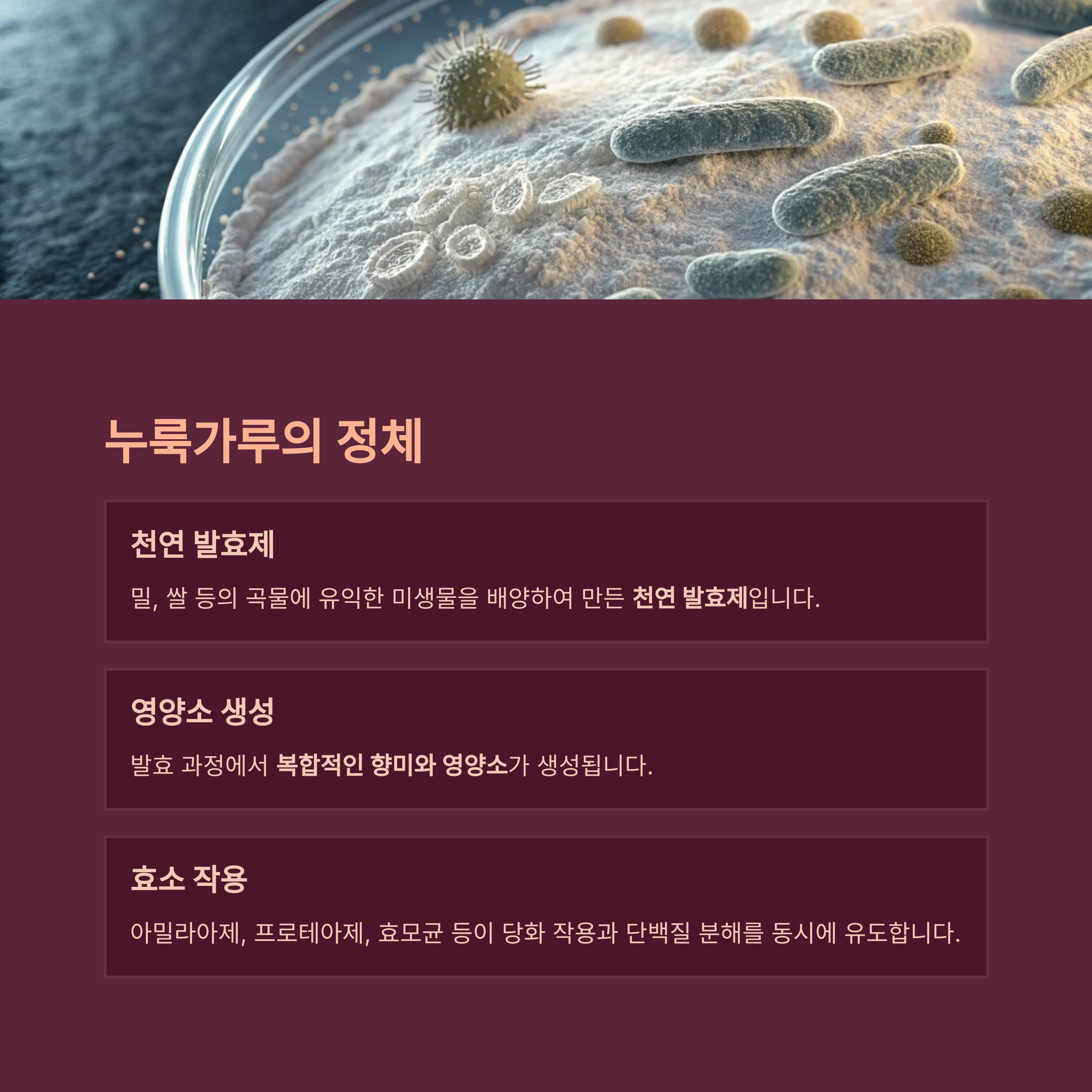누룩가루는 자연에 존재하는 다양한 발효균을 복합 배양한 것으로,