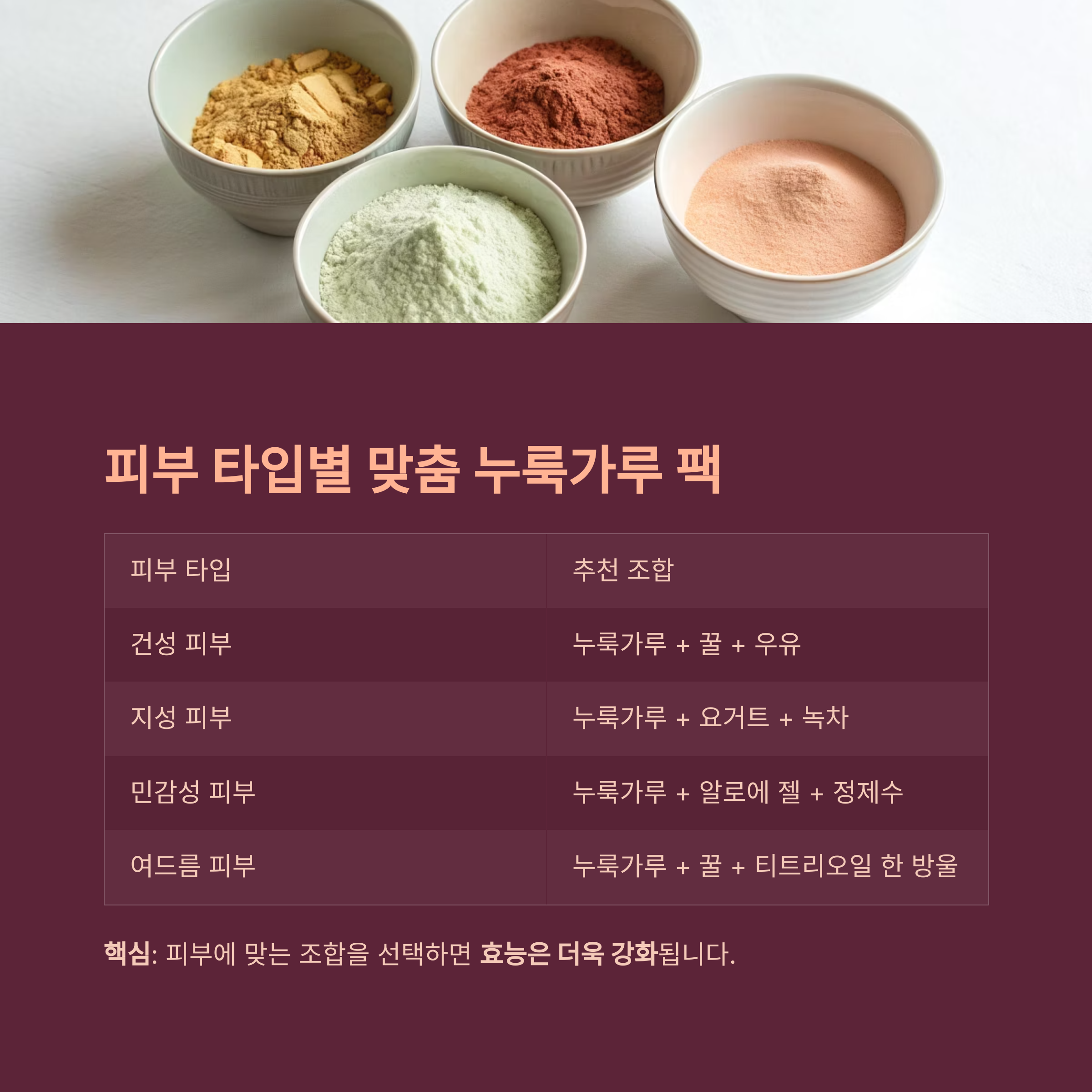 피부 상태에 따라 누룩가루 팩의 효과를 높일 수 있는 조합입니다.