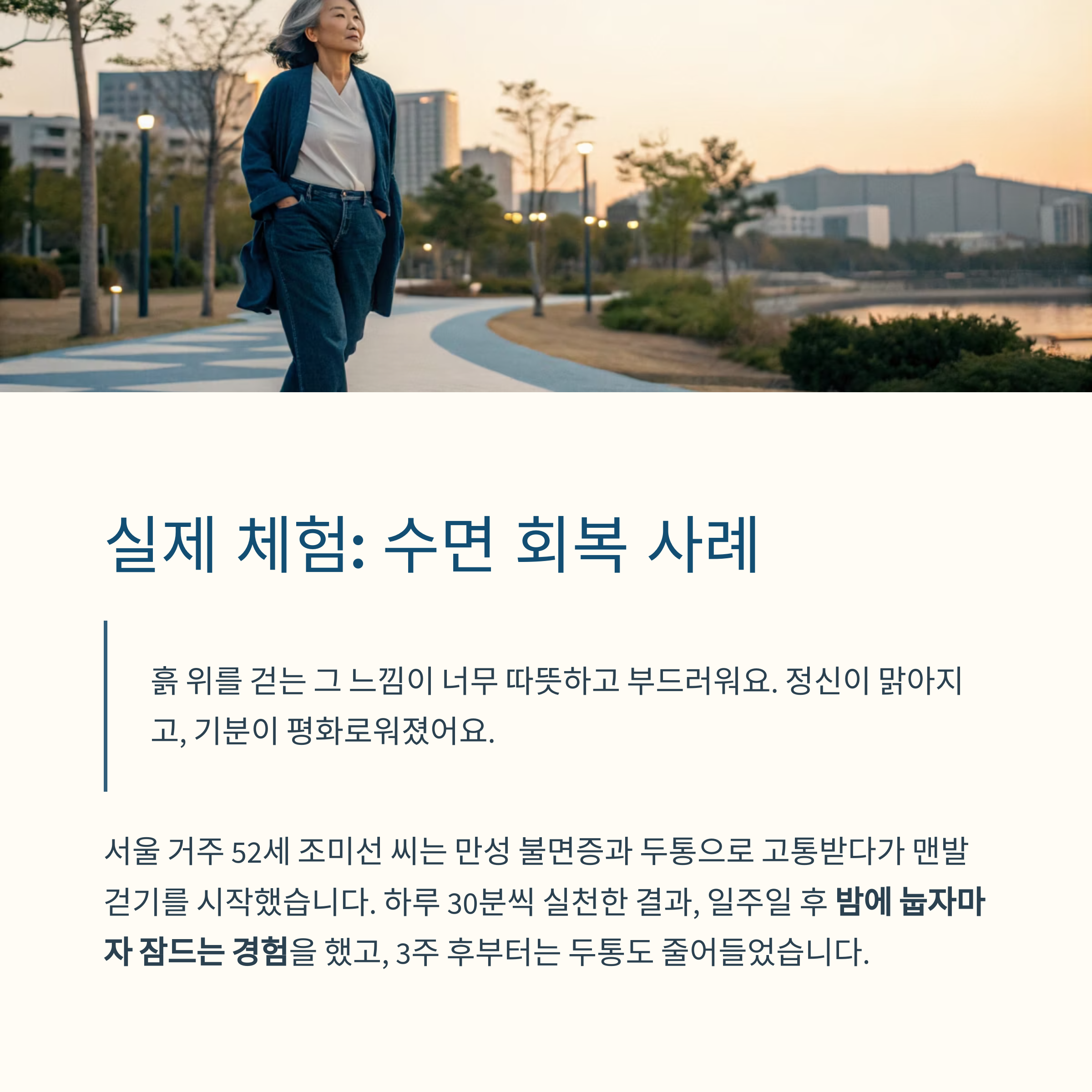 실천 사례: 50대 여성의 수면 회복 체험