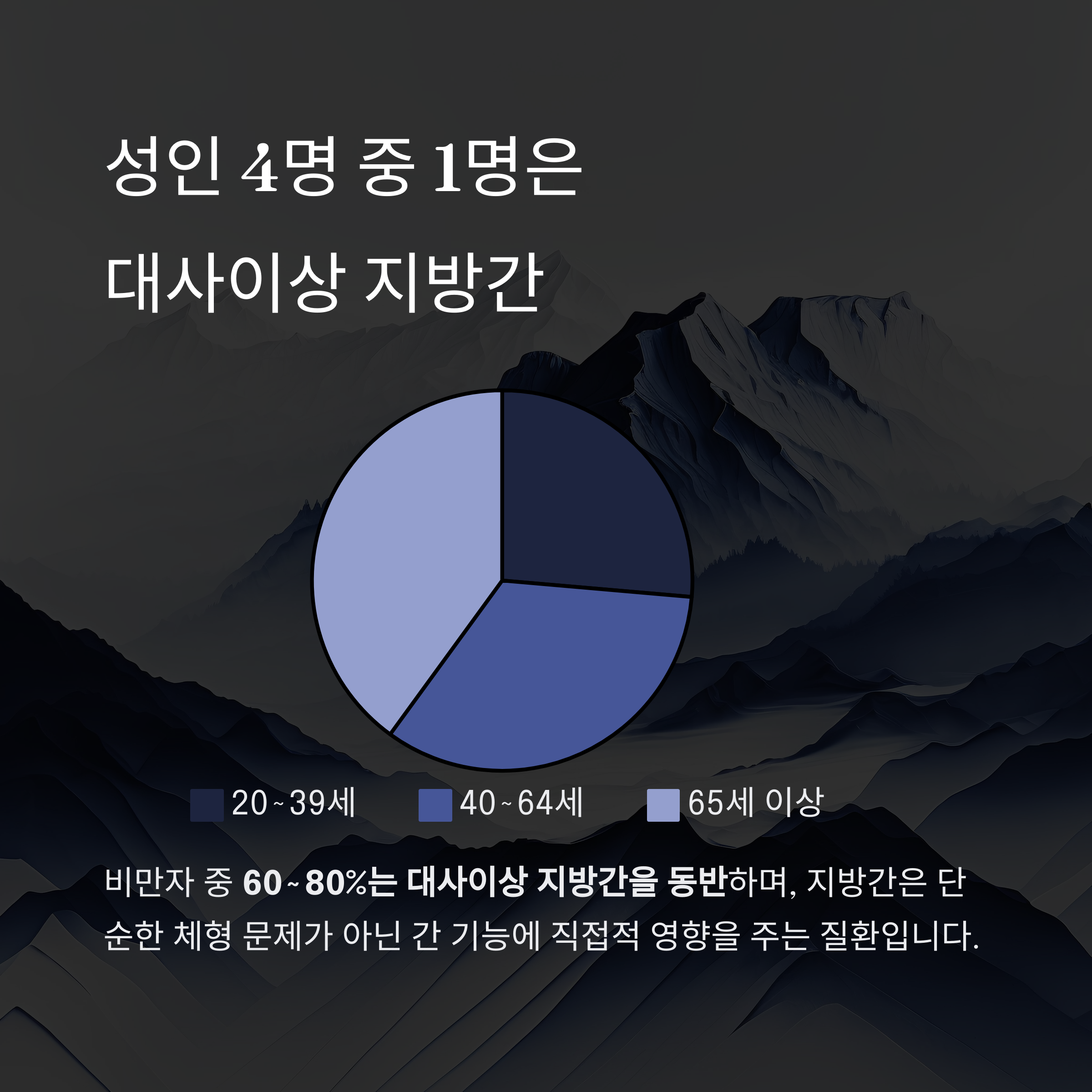 비만자 중 60~80%는 대사이상 지방간을 동반합니다.