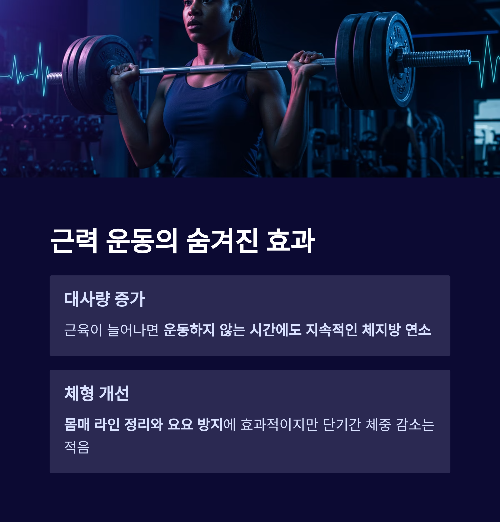 근력 운동은 지속 가능한 감량과 체형 정비에 효과적입니다.