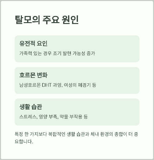 | 영양 부족 | 단백질·비타민 결핍 시 모근 약화 |